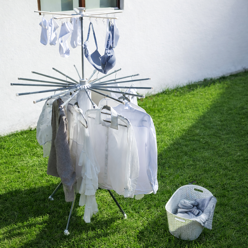 Es una estación de secado de alta capacidad. The Simpel Tower™ soporta hasta 30 kg de ropa (incluyendo toallas húmedas y zapatillas), lo que equivale a 2 cargas completas de una lavadora estándar. Además, ofrece 3 zonas de secado dedicadas: varillas para prendas grandes, clips para ropa interior y estantes inferiores.